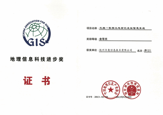 • 地理信息科技進步獎---湖北省智慧國土構建與應用一等獎